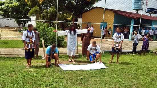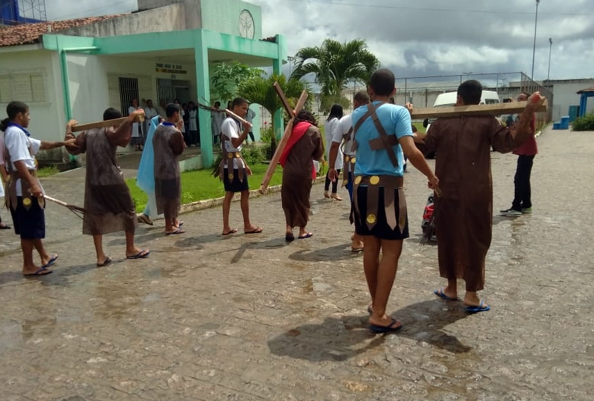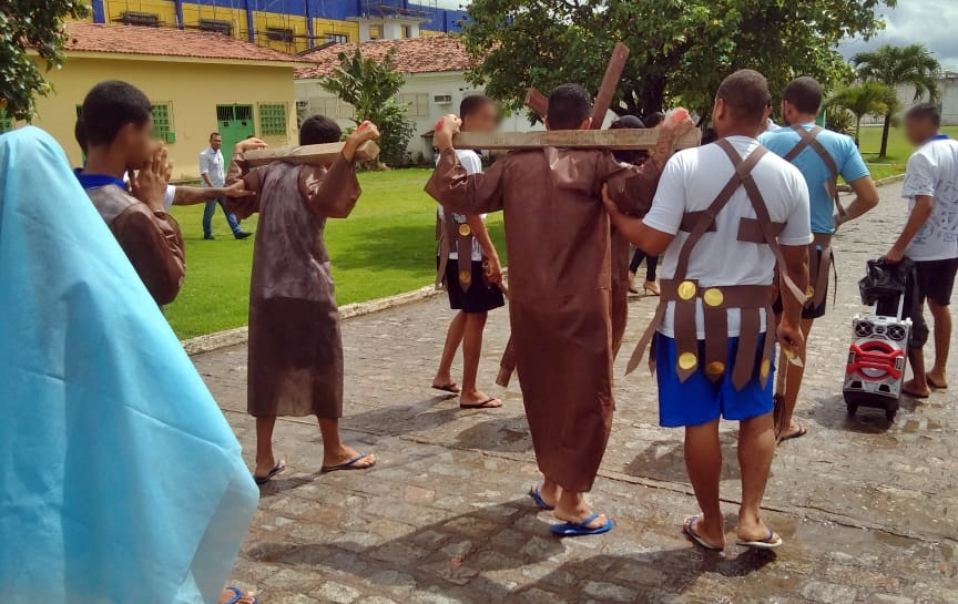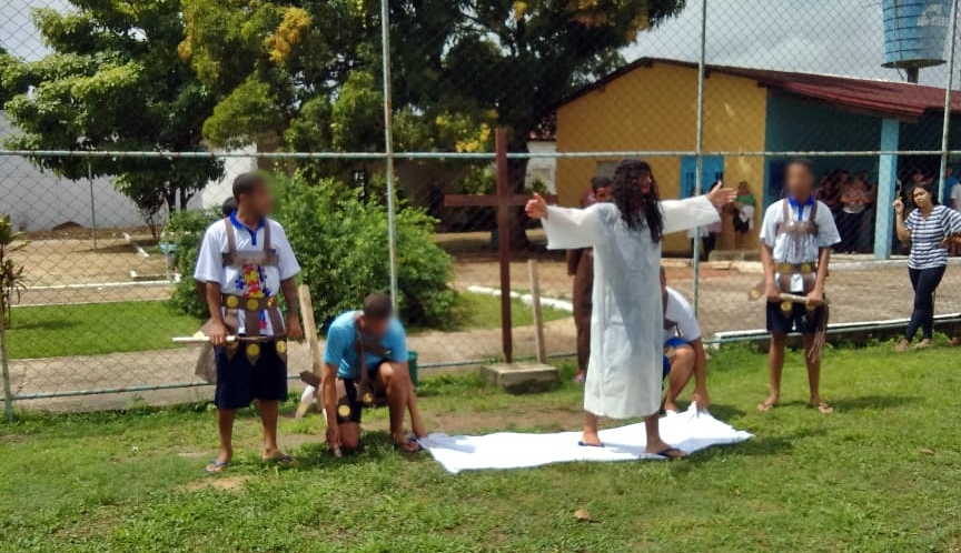 Os adolescentes da Unidade de Internação Masculina (UIM) tiveram uma manhã diferente nessa quarta-feira (17). Eles vestiram um figurino totalmente diferente do convencional e encenaram a Paixão de Cristo para comemorar a data festiva.