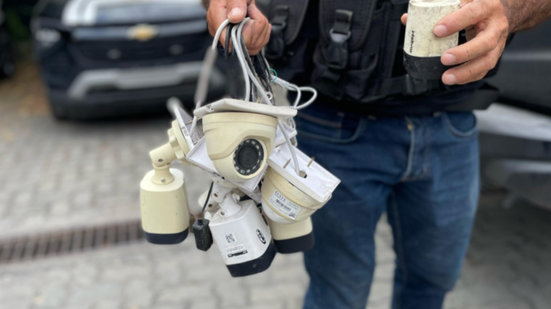 Na mesma cidade, os policiais identificaram e desinstalaram uma rede de câmeras de vídeomonitoramento localizada em pontos estratégicos. Entre o material apreendido estavam 30 armas de fogo, 814 munições, 90 porções de drogas, 14 celulares, 16 equipamentos eletrônicos, duas granadas, três veículos e três coletes balísticos.