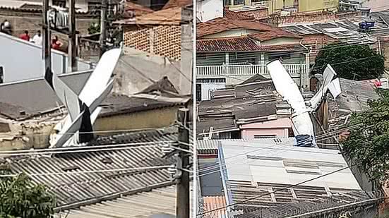 Um avião caiu, atingindo duas casas no bairro Jardim Montanhês, na Região Noroeste de Belo Horizonte, na tarde deste sábado (11). De acordo com o Corpo de Bombeiros, duas pessoas ficaram feridas.