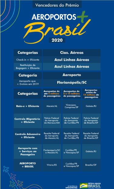 O prêmio foi entregue pelo Ministério da Infraestrutura, em cerimônia realizada no Aeroporto de Brasília. De acordo com os dados de satisfação geral do levantamento apresentados pela Secretaria Nacional de Aviação Civil (SAC), vinculada ao Ministério da Infraestrutura, os terminais avaliados tiveram nota 4,43 em 2019. No ano anterior, o resultado foi 4,35.