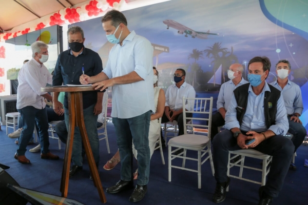 O governador de Alagoas, Renan Filho (MDB), e o secretário de Estado do Transporte e Desenvolvimento Urbano, Mosart Amaral, assinaram, nesta quinta-feira (4), a ordem de serviço para o início das obras do Aeroporto Costa dos Corais, em Maragogi. A obra foi orçada em cerca de R$ 120 milhões, com recursos próprios do Tesouro Estadual alagoano.