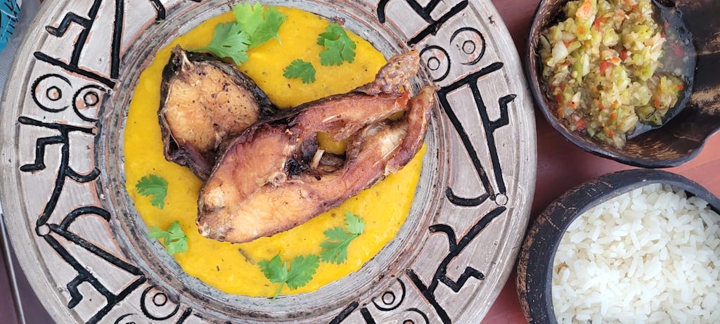Outro clássico do Odara é o peixe de tilápia frito, com pirão e vinagrete. No cardápio tem pratos veganos, como a moqueca de banana com arroz, pirão e vinagrete. Também tem almôndegas de grão de bico com cuscuz, escoltadas por purê de abóbora, vegetais e molho pesto.