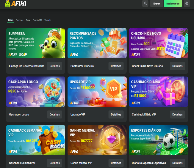 A Afun.bet.br oferece aos novos usuários bônus de boas-vindas atrativos, além de promoções sazonais, como cashback, rodadas grátis e torneios exclusivos. Usuários frequentes também participam de um programa VIP, com benefícios personalizados, atendimento exclusivo e limites aumentados de apostas e saques.