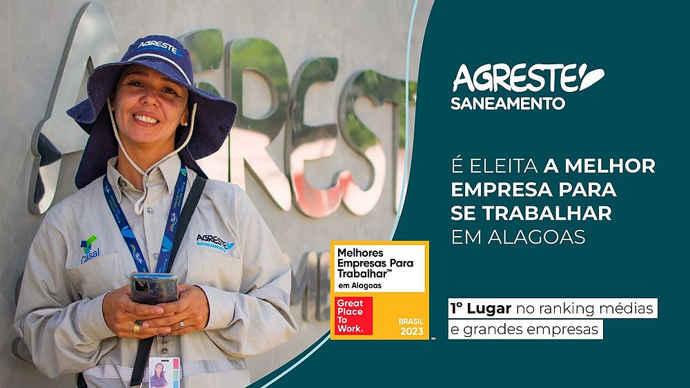 O melhor lugar para se trabalhar em Alagoas no ano de 2023 é na Agreste Saneamento. A operação do Grupo Iguá conquistou, nesta terça-feira (25), o primeiro lugar na categoria empresas de médio porte, na edição estadual do selo GPTW (Great Place To Work). Esta foi a sétima vez que a companhia integrou o ranking e a 3ª vez que conquistou o primeiro lugar.