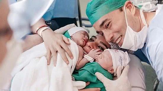 A jornalista Andréia Sadi, 33, divulgou em suas redes sociais, neste domingo (11), as primeiras fotos de seus filhos gêmeos, Pedro e João, fruto de seu relacionamento com o também jornalista André Rizek, 45, que nasceram na última quarta-feira (7).