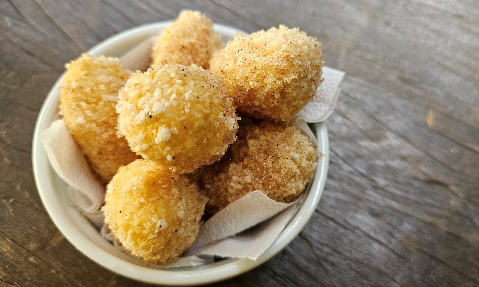 Bolinho de estudante: farinha de tapioca, coco, açúcar e canela