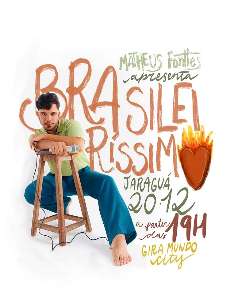 "Nesse show eu quero exaltar a dramaticidade da música brasileira, usando essa chama que toma conta do meu coração quando canto", revelou o artista Matheus Fonttes, uma grande voz no mercado musical e teatral em Alagoas, que promete incendiar corações com o projeto 'Brasileiríssimo', no dia 20 de dezembro, a partir das 19h, no Gira Mundo City, Jaraguá.