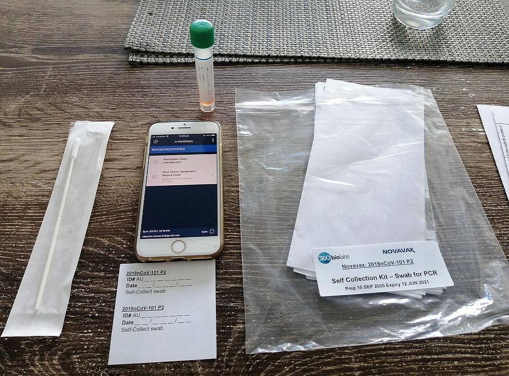 | Kit usado por pacientes que participam do estudo da Novavax |
