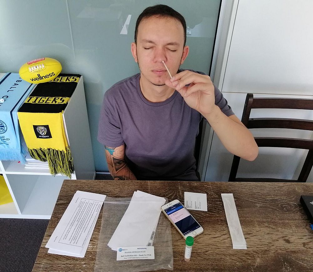 O jornalista conta que duas vezes por mês ele mesmo faz a coleta de secreção nas narinas, e o laboratório vai até a casa dele para pegar o material e analisar se ele contraiu ou não o novo coronavírus.