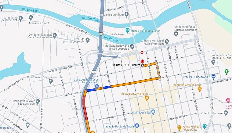 ![]() A localização do hotel em que o professor alagoano estava hospedado em São Leopoldo, cidade que fica a pouco mais de 70km da capital. Mais acima, o Rio dos Sinos (Foto: Google Maps) |