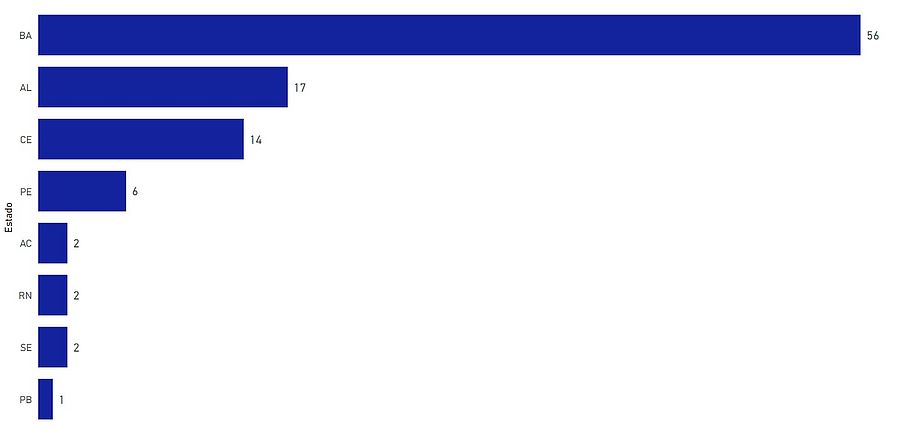 Segundo o LabSis, Alagoas teve 17 tremores de terra somente neste ano, ficando atrás apenas da Bahia, que teve 56 registros. Na sequência, aparecem Ceará (14); Pernambuco (6); Acre, Rio Grande do Norte e Sergipe (2); e Paraíba (1).