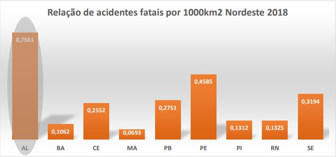 E no ranking nacional, quando considerada a área de cada estado, Alagoas só perde para o Distrito Federal: