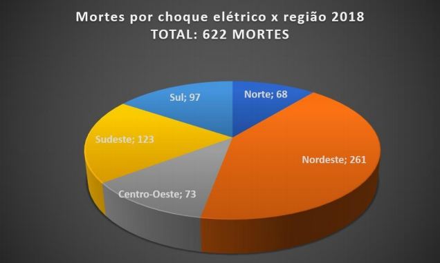 A entidade é a única a levantar dados de acidentes de origem elétrica, tipificando e segmentando por idade, gênero, profissão, localidade, etc. É importante sinalizar que no total do país, os choques elétricos somaram 622 mortes – sendo a região Nordeste a campeã em ocorrências, com 261 mortes. Este dado sinaliza uma tendência de estabilização, já que nos últimos anos, o número tem se mantido na média de 600 mortes, o que representa quase duas mortes por dia ocasionada por choque elétrico no país. Já os incêndios apresentam uma curva ascendente, em 2017 foram 451 incêndios com 30 mortes, já em 2018 foram 527 incêndios com 61 mortes. Um dado que impressiona é que 80% destes incêndios e mortes aconteceram dentro de residências.
