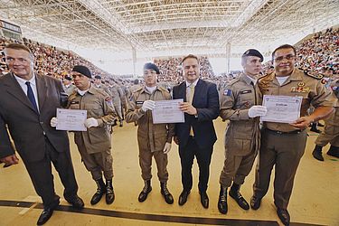 “Eu fui eleito para elevar o contingente policial, para garantir mais segurança ao cidadão e é isso o que estamos promovendo hoje, aqui, com esses novos soldados, dando exemplo ao Brasil. Enquanto muitos Estados sequer pagam os salários, aqui a gente mantém as contas em dia, faz concurso público, forma novos policiais e garante avanços em todas as áreas”, destacou o governador, reafirmando o compromisso de realizar concursos anuais para a área da Segurança Pública.