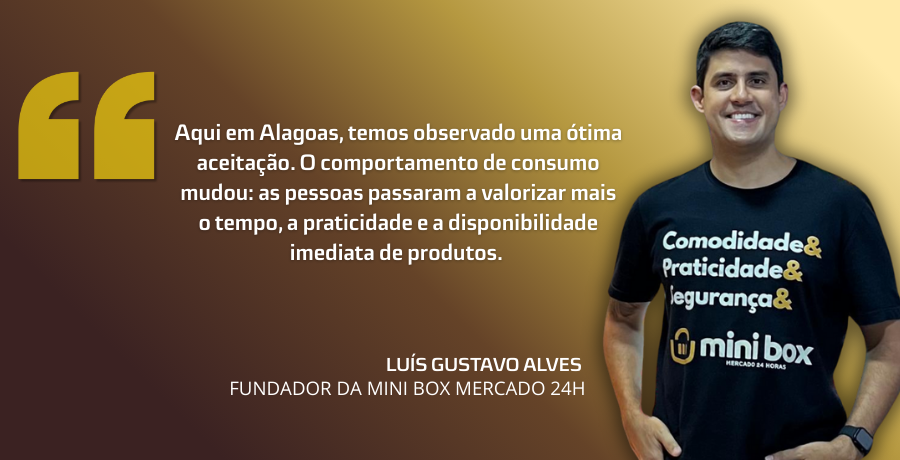 “Me chamou a atenção o quanto esse modelo soluciona necessidades do dia a dia, oferecendo praticidade tanto em condomínios quanto em empresas, academias e outros locais. Disponibilizamos produtos essenciais sem filas e com total autonomia. A partir disso, busquei conhecer mais o setor e, em junho deste ano, lançamos oficialmente o Mini Box Mercado 24h, uma empresa 100% alagoana, com a proposta de levar essa inovação para o nosso estado, oferecendo mais comodidade, praticidade e segurança para o dia a dia dos alagoanos”, disse.