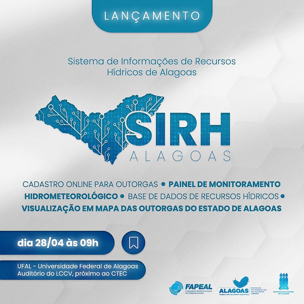 Garantir a disponibilidade hídrica e o monitoramento destes recursos de forma efetiva e com transparência. É com este intuito que o Governo de Alagoas, por meio da Secretaria de Meio Ambiente e dos Recursos Hídricos (Semarh), fará o lançamento do Sistema de Informações de Recursos Hídricos de Alagoas (SIRH), na próxima quinta-feira (28), no Laboratório de Computação Científica da Universidade Federal de Alagoas, a partir das 9h.
