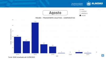 A Secretaria de Segurança Pública ainda divulgou que não houve registros de roubo em transportes coletivos de todo o estado em agosto de 2023.