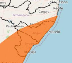 O alerta de cor laranja foi emitido para 96 cidades de Alagoas. Foto: Inmet