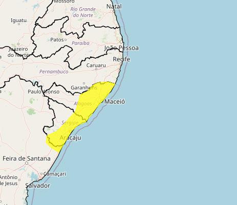 O alerta do Inmet foi atualizado para Maceió e mais 82 municípios de Alagoas. Foto: INMET