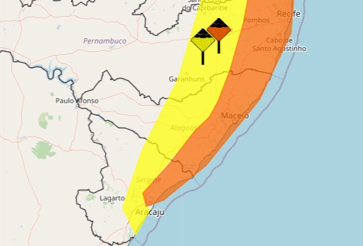 Além de Alagoas, municípios de Rio Grande do Norte, Paraíba, Pernambuco e Sergipe, em maioria na costa do Nordeste, também estão inseridos no alerta laranja.