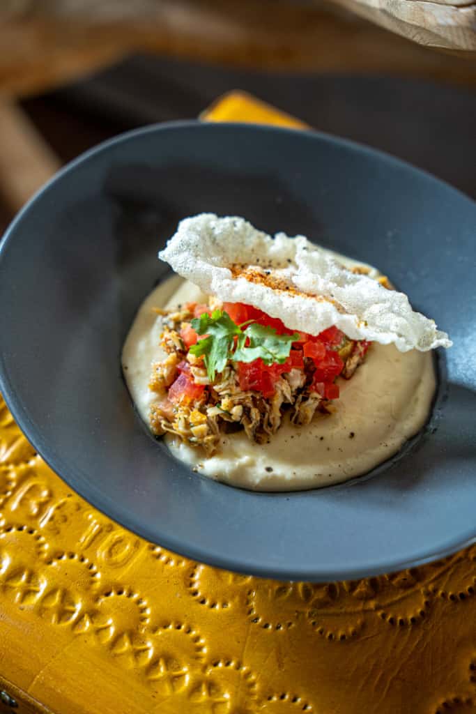 A entrada já dá o tom da comida da casa da minha mãe: Mingaupitinga (mistura de massapuba com leite de coco) com siri na manteiga, finalizado com raspas de limão.