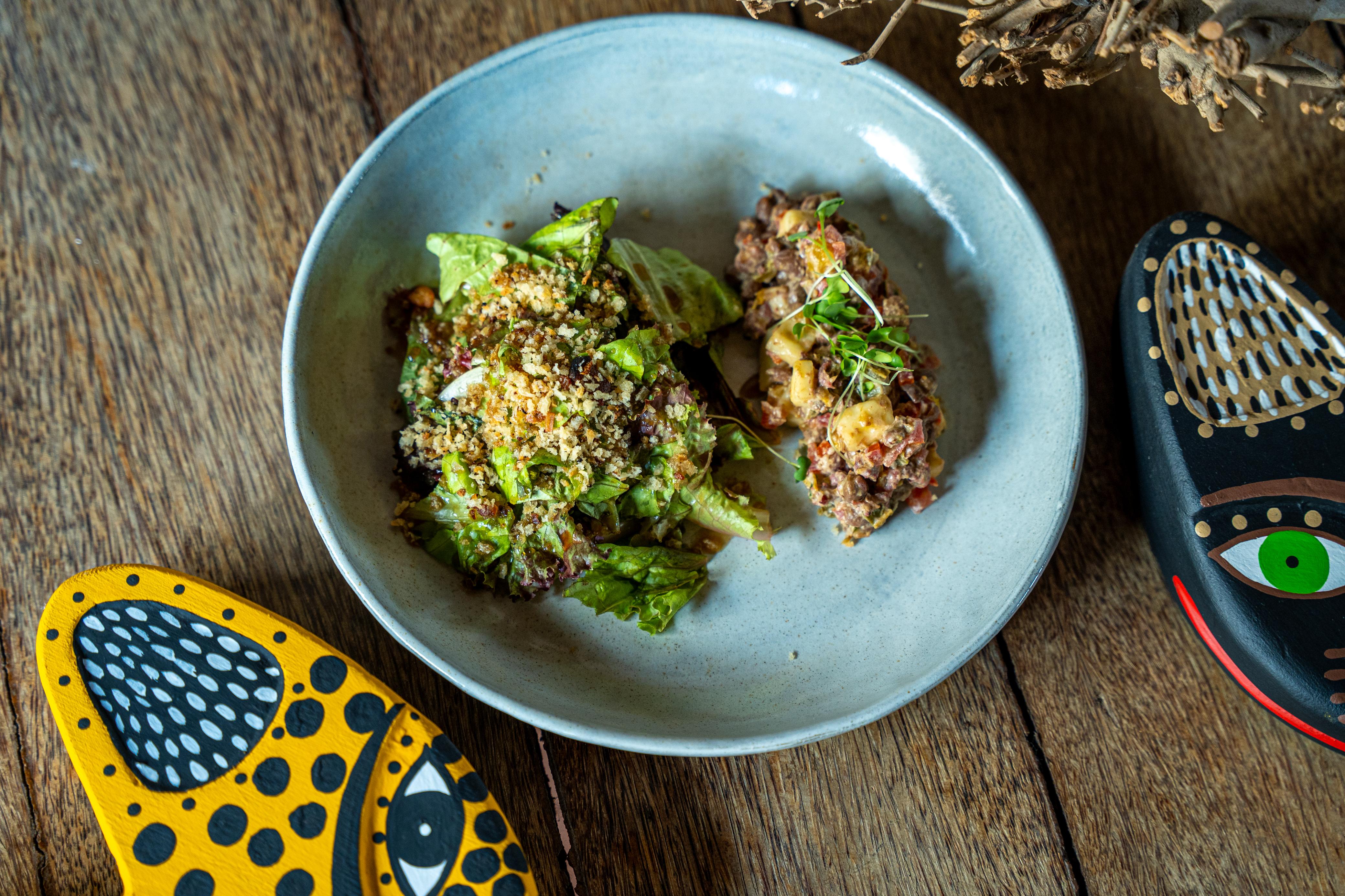 A outra opção traz ingredientes das minhas andanças pelo Sertão: salada de feijão verde cremoso com queijo coalho e linguiça caseira.
