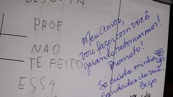 Diante da dificuldade da aluna, a professora Rosiani Macho deixou um recado demonstrando apoio à criança. "Meu amor, vou fazer com você quando retornarmos! Prometo! Se cuide, minha flor", escreveu ela ao dar o visto na tarefa.