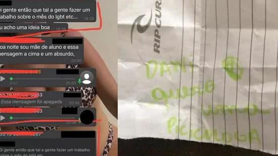 "Uma senhora que se diz coordenadora da escola, chamada Marines, ligou para ele por volta das 20:30 da noite acabando com ele, falando para ele retirar o comentário que no caso foi uma 'sugestão de estudo' senão iria remover ele do grupo da escola. Falou para ele que era inapropriado, inadmissível. Que era um absurdo ele ter colocado aqui no grupo, que ele precisava de tratamento", escreveu Danielle.