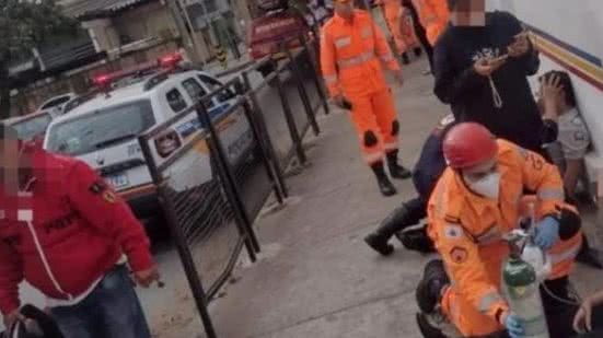 Os bombeiros se mobilizam para atender estudantes do Colégio Tiradentes, na rua dos Pampas, no bairro Prado, região Oeste de BH, que entraram em contato com gás lacrimogêneo nesta terça-feira (9).