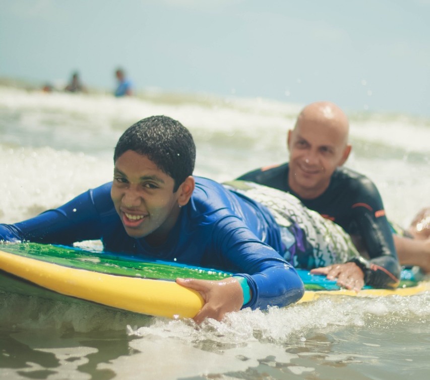 Para os alunos da FAT, a atividade é prática da disciplina Psicologia das Necessidades Educativas Especiais, ministrada pela neuropsicóloga, Fabiana Lisboa, que é coordenadora do Centro Unificado de Integração e Desenvolvimento do Autista (Cuida), da Associação de Pais e Amigos dos Excepcionais (APAE) de Maceió, esta que, em parceria com o projeto Onda Azul, é responsável pela realização do evento, na capital alagoana. “Além do benefício inquestionável que o esporte traz, principalmente sendo desenvolvido em forma de terapia, inclusão social, diversão e interação com as famílias, nosso objetivo com essa oficina é mostrar que os meninos e meninas com Transtorno do Espectro do Autismo (TEA) são capazes”, destaca Fabiana.