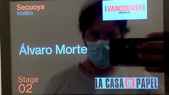O ator aparece de máscara através do reflexo de um tablet do set de gravações da série, na qual dá para ver ainda o nome do estúdio onde as gravações acontecem. As gravações foram liberadas na Espanha no final de junho.