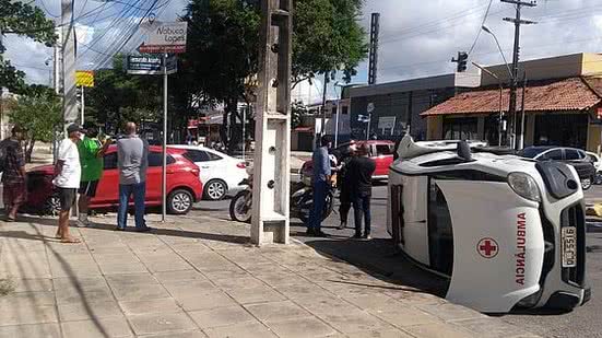 Uma ambulância bateu em um carro de passeio e capotou na Avenida Doutor Antônio Gomes de Barros, conhecida como Amélia Rosa, no bairro Jatiúca, na manhã desta sexta-feira (26).