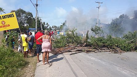 "Eles não aceitam retirar as barracas e estão irredutíveis em liberar a via. O Gerenciamento de Crise da PM já foi acionado para tentar uma reunião entre a Prefeitura de Maragogi, MP e os trabalhadores ambulantes", disse o tenente-coronel.