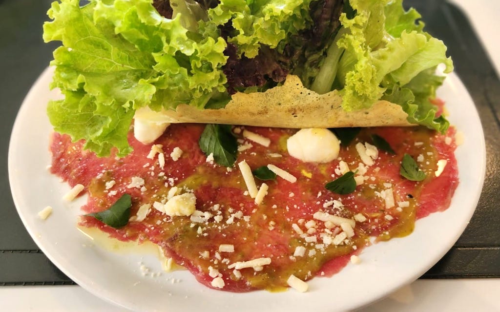 Carpaccio de carne com salada