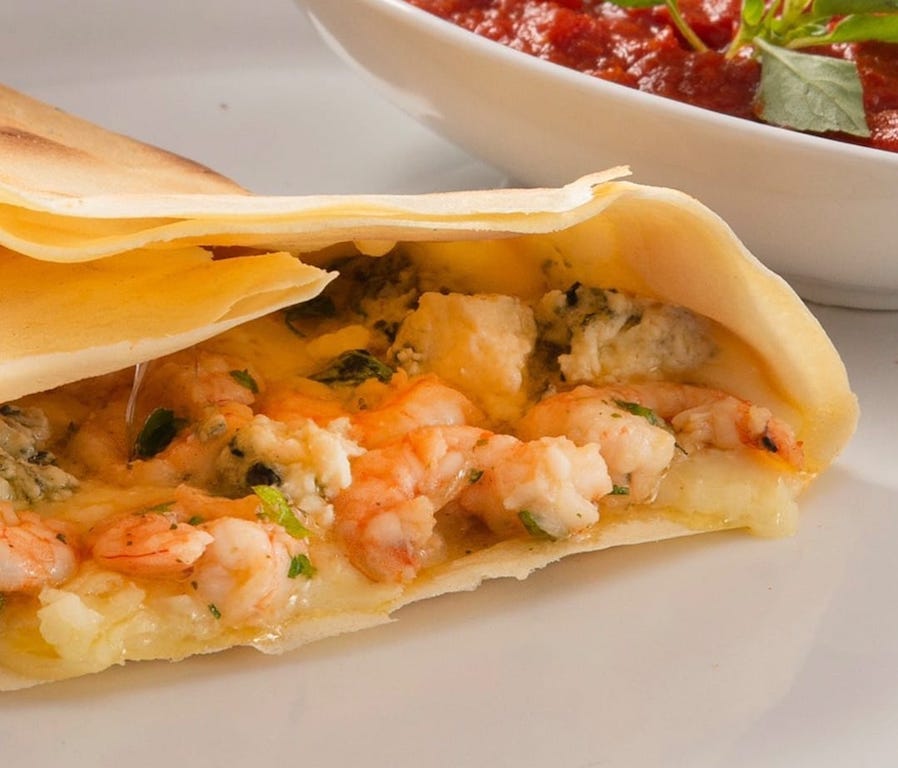 Crepe de camarão com gorgonzola