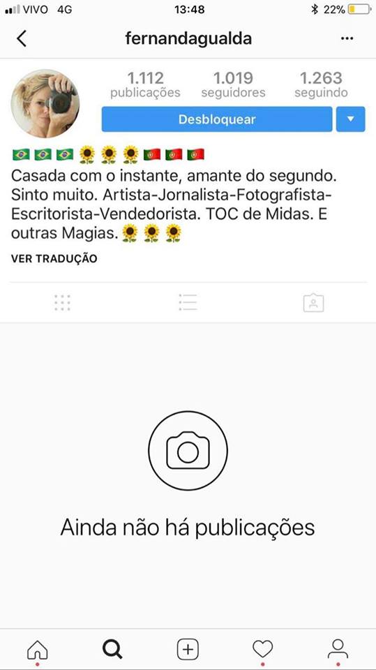 Desta vez, trata-se de uma mulher, cujo nome é Fernanda Gualda, e no perfil, diz ser uma brasileira que vive em Portugal: “Eu comecei bloqueando, mas percebi que a perseguição continua com meus amigos e familiares. Antes, a gente apagava e bloqueava. Agora não dá mais, eu não vou viver com medo”.