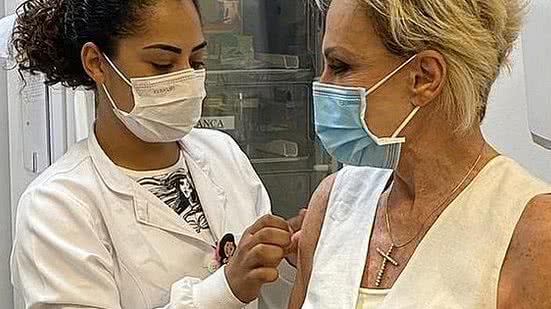 Ana Maria Braga foi vacinada contra a Covid nessa sexta-feira (26) em São Paulo. A apresentadora de 71 anos tomou a primeira dose e comemorou: "Vacinada!!!".