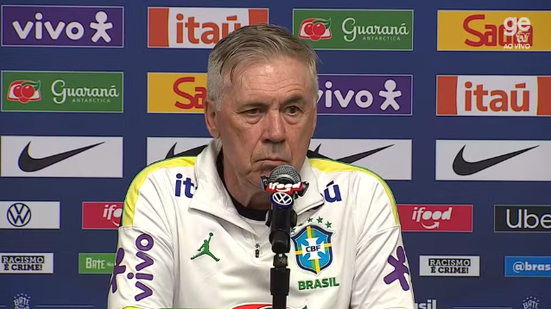 Ancelotti não quis detalhar quais mudanças fará na escalação em relação à derrota para a França, na última quinta, mas confirmou que Marquinhos e Vini Jr estarão à disposição e serão titulares. O técnico também avisou que manterá o esquema tático com quatro homens de frente.