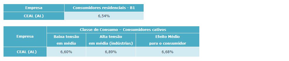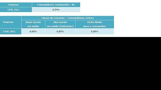 A diretoria da Agência Nacional de Energia Elétrica (Aneel) aprovou hoje (18/9), durante reunião pública, o reajuste tarifário da Companhia Energética de Alagoas (Ceal). A empresa atende 1,1 milhão de unidades consumidoras localizadas em Alagoas. O reajuste entrará em vigor a partir de 28/9.