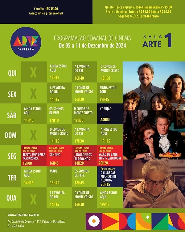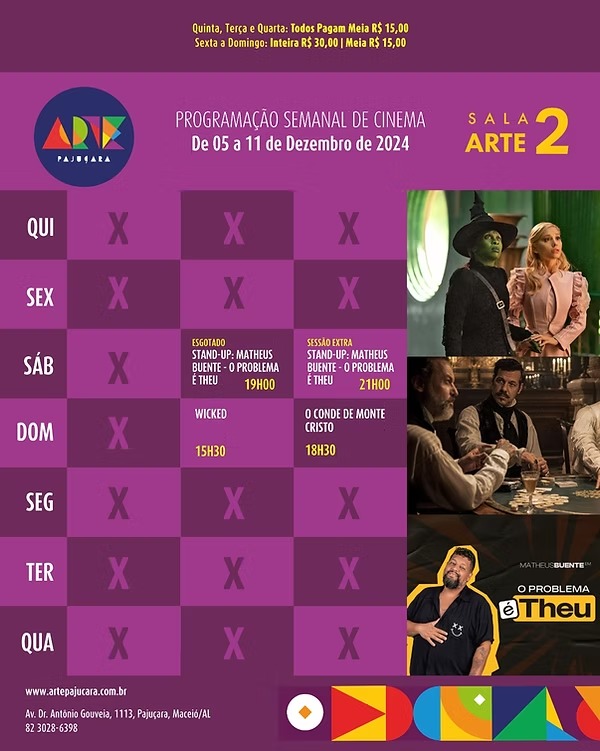 Disponível em: Arapiraca Partage Shopping, Cinesystem (Parque Shopping) e Arte Pajuçara.