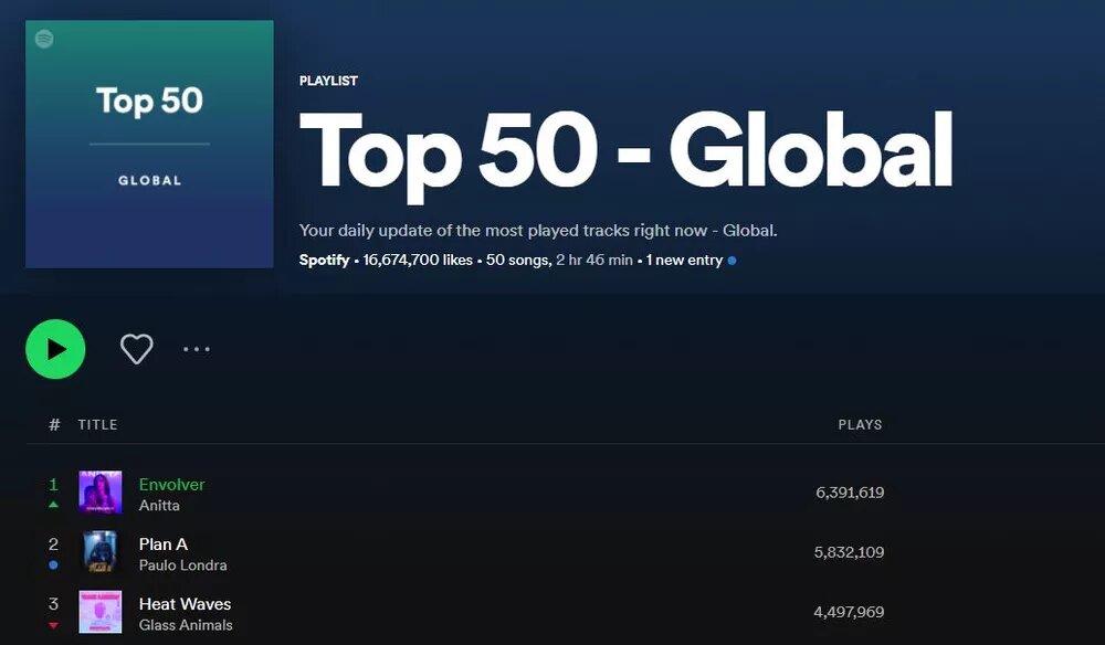 O Reggaeton lançado por Anitta em novembro de 2021, "Envolver" alcançou nesta sexta-feira (25) o 1º lugar no ranking das mais ouvidas do mundo, segundo a plataforma de música Spotify. Às 8h a música acumulava 6,39 milhões de reproduções.