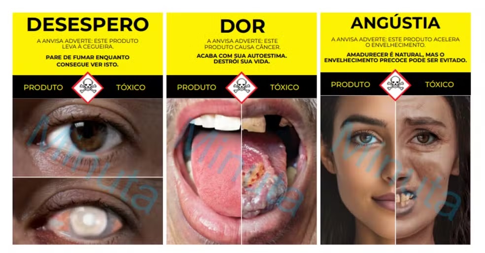 Sete imagens e textos foram aprovados, abordando diferentes problemas de saúde, com o objetivo de conscientizar e alertar sobre os malefícios do uso de produtos derivados do tabaco.
