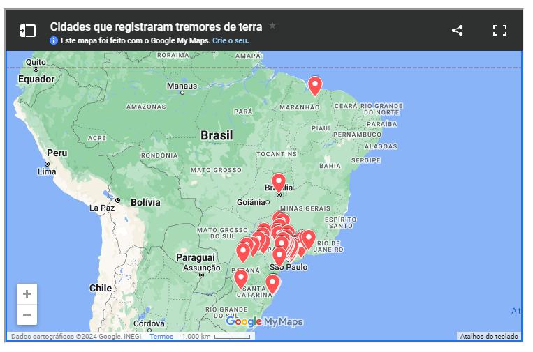 Os relatos foram compilados pelo Centro de Sismologia da USP. A maioria dos registros ocorreu no estado de São Paulo e em cidades vizinhas ao território paulista, mas também foram descritos tremores no Maranhão, Distrito Federal e Santa Catarina.