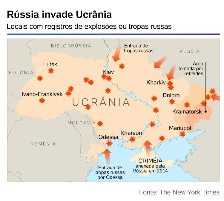 Logo após o discurso, repórteres da rede americana CNN disseram ter ouvido explosões em Kiev, capital da Ucrânia, e em Kharkiv, a segunda maior cidade, localizada no nordeste do país.