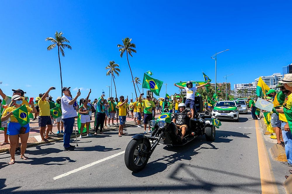 Em Maceió, neste 7 de Setembro, Dia da Independência do Brasil, manifestantes pró-governo asseguraram que a orla fosse tomada pelas cores da bandeira com centenas de apoiadores do presidente Jair Bolsonaro (sem partido) vestidos de verde e amarelo. O ato tem concentração no Corredor Vera Arruda, na Jatiúca, e defende pontos como liberdade de expressão, democracia e valorização da família.