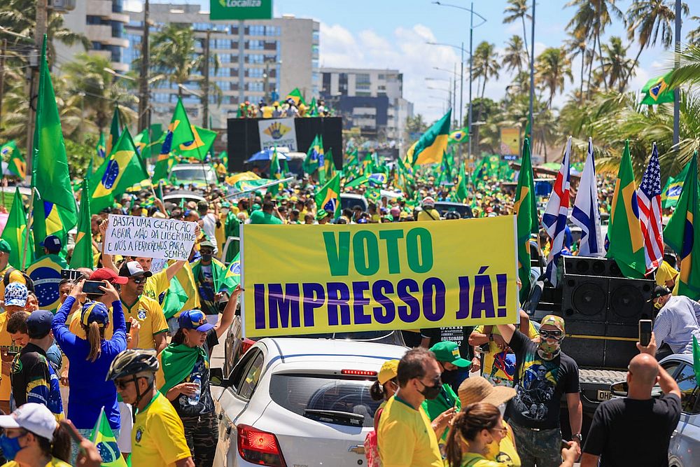 Durante o ato estão sendo entoados gritos de guerra ressaltando Deus, a pátria e a família. Temas como o voto impresso também voltaram à tona neste dia de manifestações.