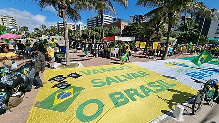 Em Maceió, neste 7 de Setembro, Dia da Independência do Brasil, manifestantes pró-governo asseguraram que a orla fosse tomada pelas cores da bandeira com centenas de apoiadores do presidente Jair Bolsonaro (sem partido) vestidos de verde e amarelo. O ato tem concentração no Corredor Vera Arruda, na Jatiúca, e defende pontos como liberdade de expressão, democracia e valorização da família.