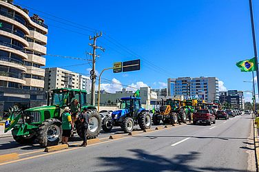 Apoiadores comparecem ao ato em carros, motos, caminhões e bicicletas. E para representar o apoio do agronegócio alagoano ao presidente, a organização levou ao menos uma dezena de carretas e tratores, que desfilaram enfileirados na Avenida Álvaro Otacílio, principal via da orla.