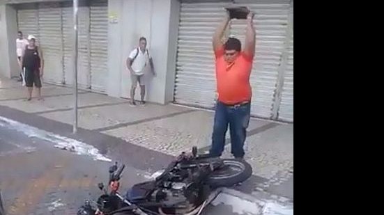 Em vídeo, é possível ver o homem tentando danificar a motocicleta com um pedaço de concreto. Guardas municipais e agentes da AMC também são vistos. Os oficiais tentaram evitar a ação do motociclista, mas moradores defenderam o direito do homem de destruir o veículo.