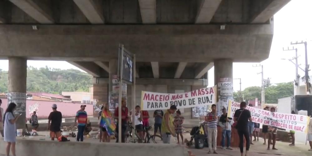 Moradores de rua fizeram protesto no viaduto, em 2023. Foto: Reprodução/ TV Pajuçara